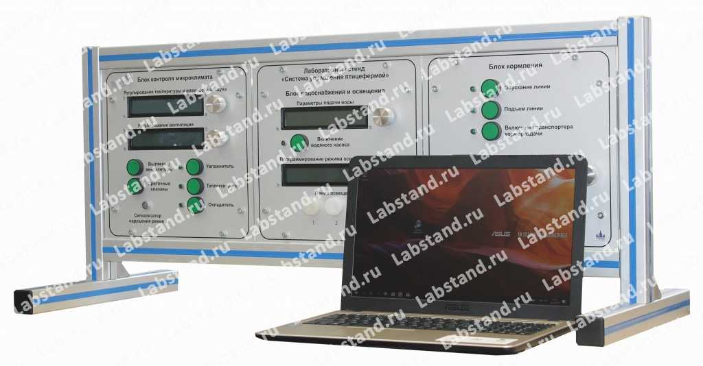 Назначение: Учебно-лабораторный стенд предназначен для проведения практических и лабораторных работ по изучению общего устройства и основных характеристик системы управления птицефермой, принципов функционирования и режимов работы системы.