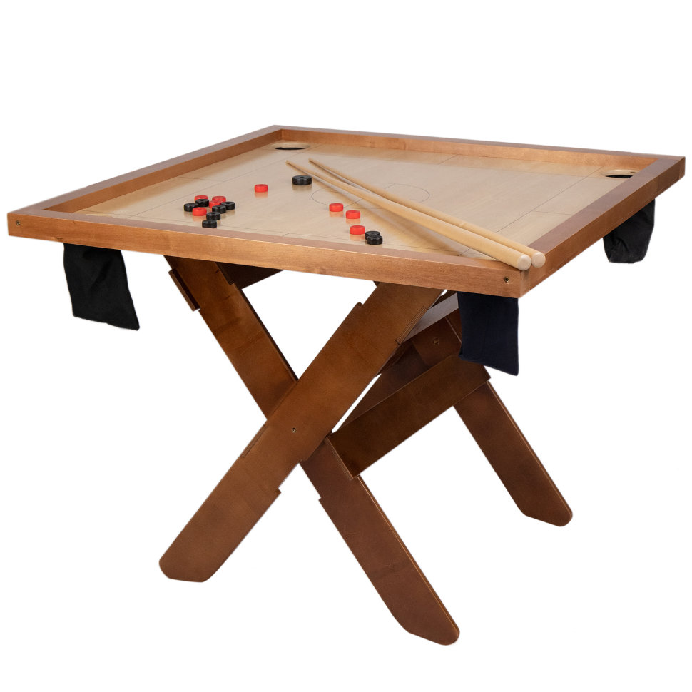 Игра Новус или морской бильярд в том виде, в котором он знаком нам, появилась в 20-веке. В неё играли английские моряки в портовых кабаках и пабах. Английские моряки для создания столов для капитанского бильярда использовали эскизы, найденные в скандинавских летописях. То есть своими корнями история игры берет начало от викингов. Бильярд, созданный моряками, называли капитанским или корабельным (Балтийский бильярд) и лишь потом игра получила название Новус. Сейчас эта игра стала национальным видом спорта в странах Балтии, так как сильно распространена именно там. В отличие от классического бильярда на игровом поле нет сукна и вместо шаров - шайбы и пешки. По размеру игровое поле гораздо меньше, что делает игру более мобильной. В процессе игры соперники стоят у противоположных сторон стола. Следует расставить восемь своих пешек в своей зоне, ближней к себе, вплотную друг к другу и плотно к бортику. Пешки располагаются от центральной линии по обе стороны по четыре с каждой стороны. Ведут игру прямыми и рикошетными ударами. Удар пешки битой, которая летит от кия, - это прямой удар. Удар пешки битой, которая летит от борта - это рикошетный удар битой от борта. Удар пешки пешкой, которая летит от другой пешки или биты - это рикошетный удар пешкой. Комплектация : игровое поле - 1 шт, пешки - 16 шт, шайбы - 2 шт, кии - 2 шт, комплект складных ног - 1 шт Размеры : 110х110 см Материалы : массив березы, фанера 15 мм, покрытие - морилка, акриловый лак