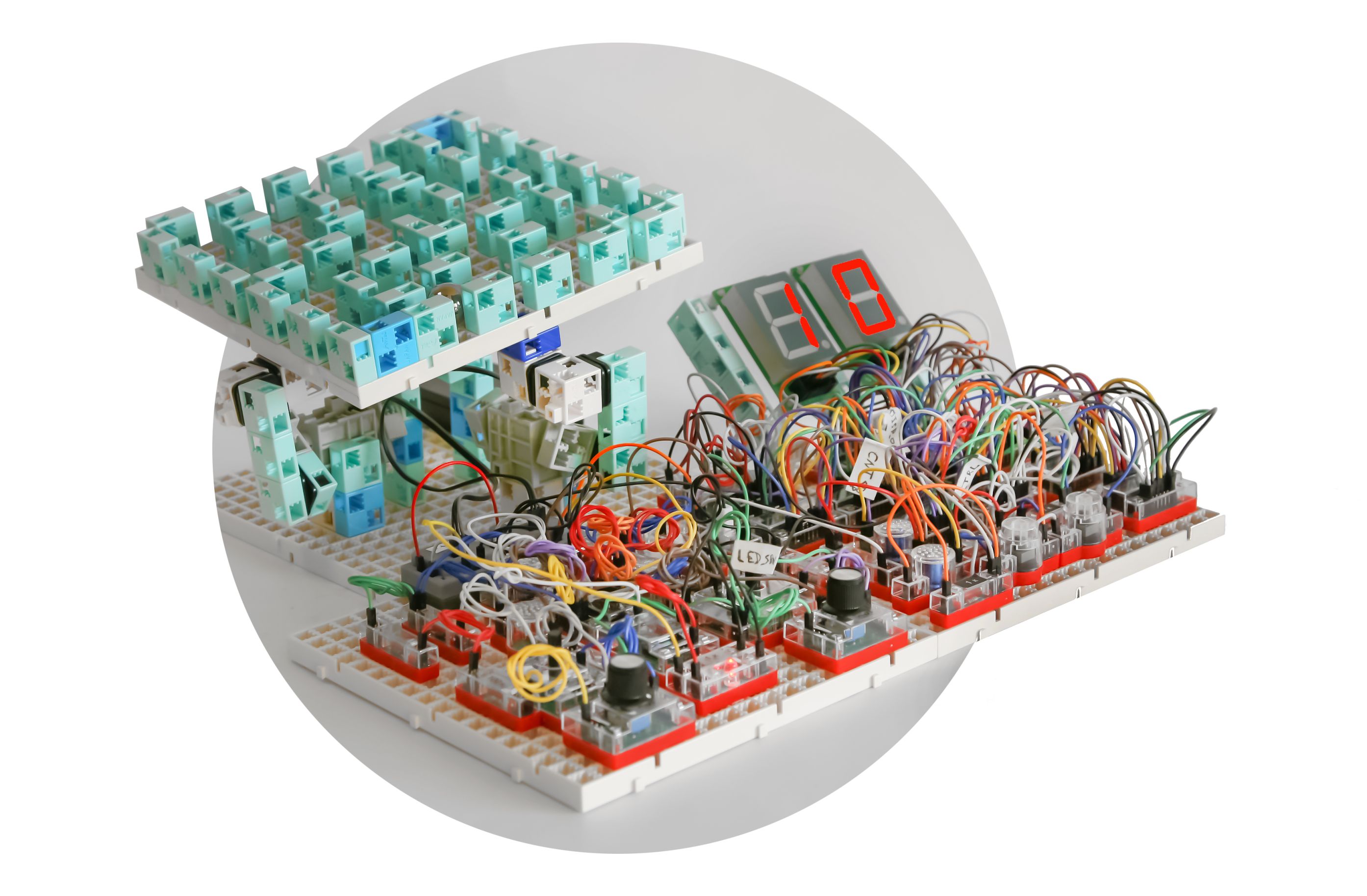 Набор представляет собой комплект электронных компонентов и соединительных деталей-кубиков. Используя эти элементы, пользователь имеет возможность собирать электрические схемы и изучать процессы, происходящие в них, а также конструировать отличные друг от друга модели, управляющиеся этими схемами, описанными в методическом пособии.