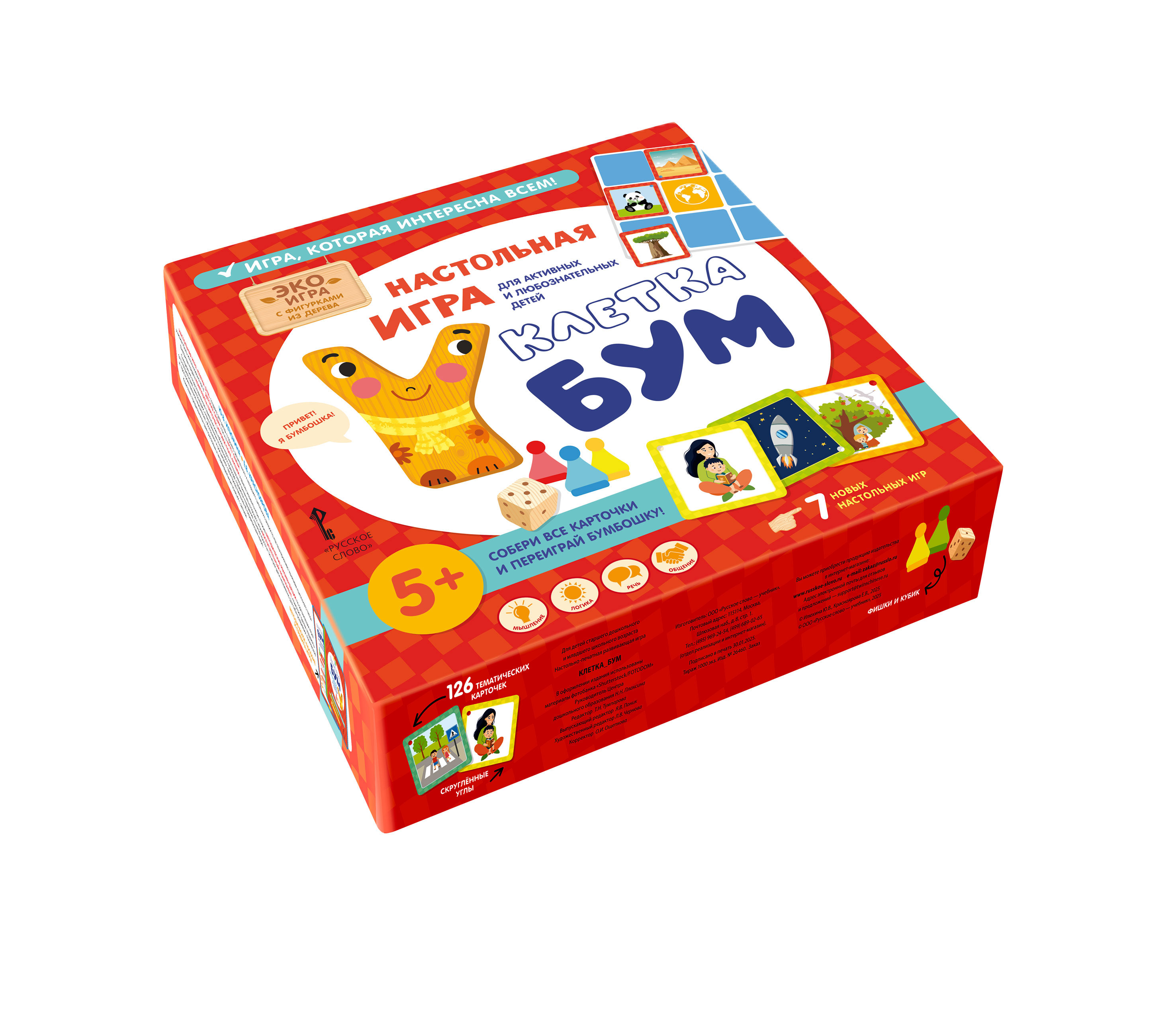 Настольная игра «Клетка_БУМ» предназначена для детей старшего дошкольного и младшего школьного возраста. Механика игры-ходилки дополнена возможностью выбора варианта игры, обогащена воспитательным компонентом и условиями развития логического и пространственного мышления.