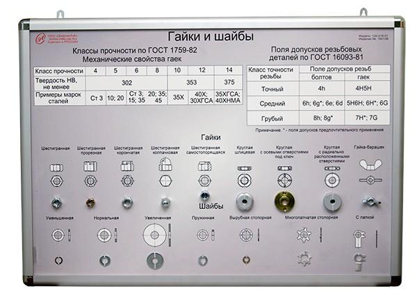 Комплект из двух планшетов формата А1 (841 х 594 мм) с возможностью использования в настенном и настольном вариантах с закрепленными на нем образцами болтов и винтов, гаек и шайб.